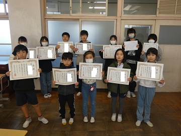 書初め大会の表彰を行いました。