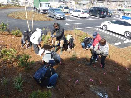 博物館にどんぐりの苗を植樹しました。 3 公開日 2024/03/08 更新日 2024/03/08 お知らせ どんぐりの苗にしっかりと水を含ませ、大きな穴を掘って、植樹しました。どんぐりの苗がとても立派だとほめてもらいました。市役所の方に、「新しい博物館は、大人が作るんじゃなくて、子どもと一緒に作るためにどんぐりの苗を植えたんだよ」という話をされて、みんなうなずいていました。 今度、訪れるときは、どんぐりの苗がどれくらい大きくなっているか楽しみですね。