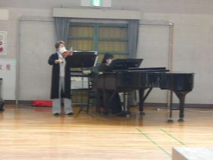 予行練習からバイオリンとピアノの伴奏が特別な雰囲気を作ります。