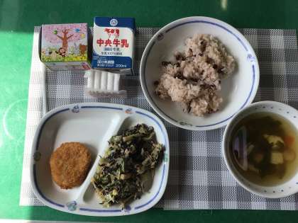 卒業お祝い献立 公開日 2024/03/14 更新日 2024/03/14 お知らせ 今日の給食は、卒業お祝い献立で赤飯とケーキが出ました。とてもおいしくいただきました。なお、給食は、卒業式や修了式の前日まで続きます。