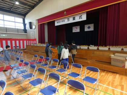 5年生は、授業後に残って、一生懸命に卒業式の会場準備をしてくれました。
