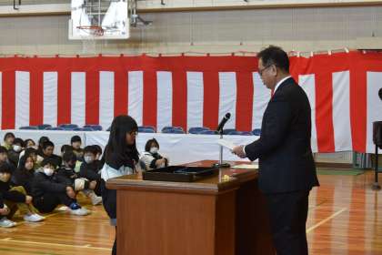 それぞれの学年の代表が、修了証をもらいました。とても立派な態度でした。