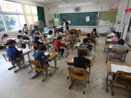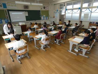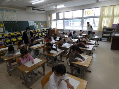 1時間目の授業は、写真のように落ちついて、姿勢に気を付けて授業をしていました。