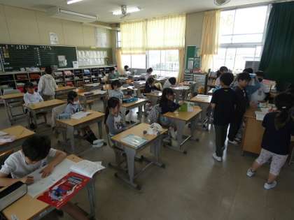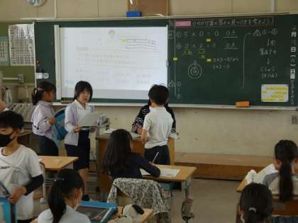 早く問題を解けた人から、先生に採点してもらっていました。子どもたちは、まるがもらえるととてもうれしそうです。