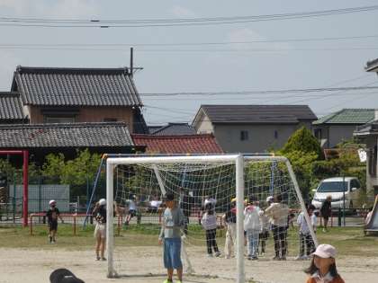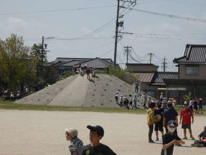 昨日の雨も上がり、晴天の今日は、長放課は、運動場で遊ぶ子どもの数が多かったです。畝部山や畝部アイランドが人気です。