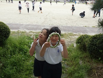 長放課にシロツメクサで花冠を作っている子がいました。