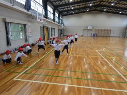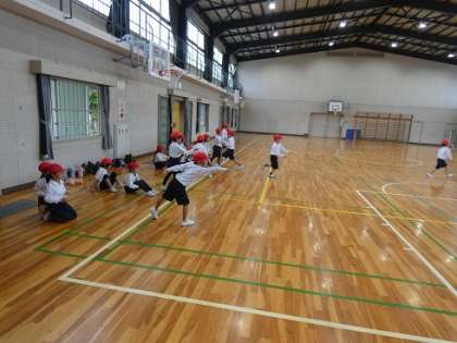 1年生の体育も体育館で行っていました。
