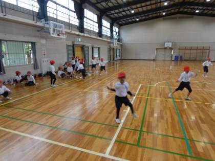スキップやカニさん歩きを使ったリレーをしていました。すごくかわいかったです。