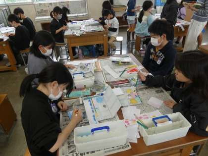 5年生 図工の授業 2 公開日 2024/04/23 更新日 2024/04/23 お知らせ 表現する楽しさを感じられたりや友達の心を思いやったり心と心のつながりを意識するきっかけになったら素晴らしいですね。