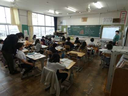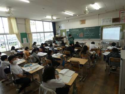 4年生の算数の授業は、毎日あります。1週間5時間の授業のうち、3時間は、TTで2人の先生で授業を見ています。