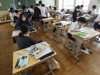 6年生 家庭科の授業 公開日 2024/05/07 更新日 2024/05/07 お知らせ 自分たちでこれから作るトートバッグのデザインをカタログから選んでいました。お気に入りの素敵なトートバッグができるとよいですね。