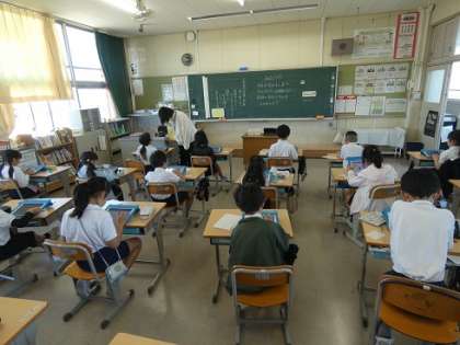 授業の始まる前の少しの時間を使って、体操したり、読書をしたり、ipadのキュビナを使って復習をしたりしています。