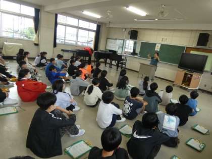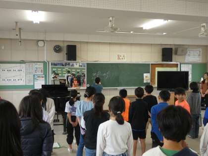 6年生 音楽の授業 公開日 2024/05/13 更新日 2024/05/13 お知らせ 合唱指導の講師の先生をお招きして、校歌を練習しました。やわらかい声で歌うことを中心に強弱をつけることも教えてもらいました。 去年の卒業生のように素敵な歌声を卒業式で響かせれるように1年かけて歌うことを大切にしたいものです。