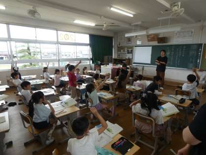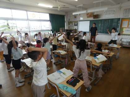 文章で書かれたことを体で表現していました。とても元気な2年生、国語の授業ものりのりです。