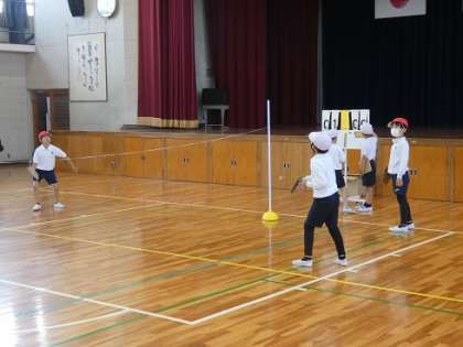 3年生 体育の授業 公開日 2024/05/17 更新日 2024/05/17 お知らせ 体育館でテニピンをしました。段ボールで作ったラッケットのようなものを手に付けて、ネットを挟んで、テニスのように打ち合います。最初は、うまくいかないようでしたが、慣れてきたら楽しそうでした。