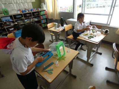 3年生 理科の授業 公開日 2024/05/24 更新日 2024/05/24 お知らせ 一生懸命に育てて、観察しているモンシロチョウやアゲハチョウが土曜日、日曜日に家に持ち帰っても大丈夫なように、餌をたくさん入れたり、湿り気を与えたりして、幼虫の家作りを進めました。