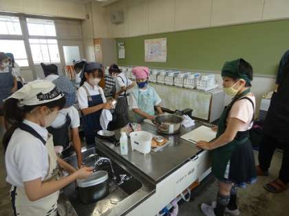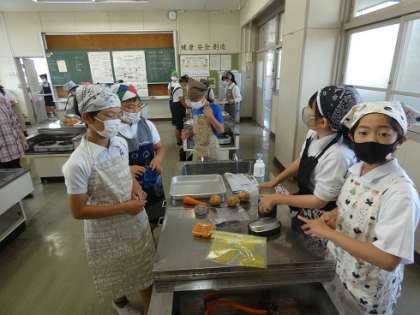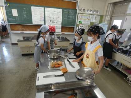 今日は、調理実習をしました。キャンプに向けて、班で協力してカレーを作りました。