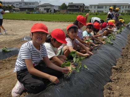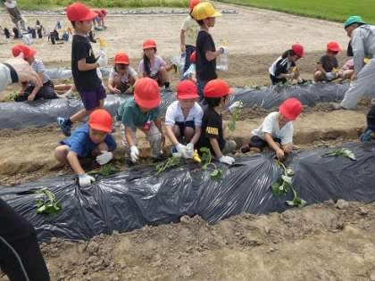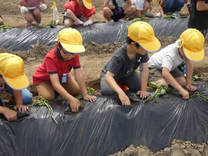 6月6日 1年生 サツマイモの苗植え 公開日 2024/06/06 更新日 2024/12/12 特色ある学校づくり推進事業 学校の近くの地域の方からお借りしている畑にサツマイモの苗を植えました。しっかり水をやってたくさんサツマイモが収穫できるといいですね。