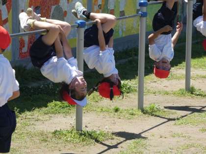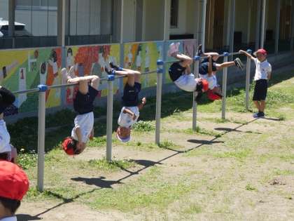 鉄棒の練習をしました。コウモリに挑戦しました。