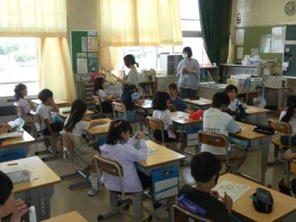 栄養教諭の先生に来ていただいて、バランスの良い食事のとり方について勉強しました。