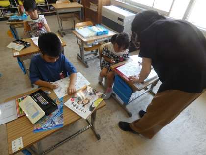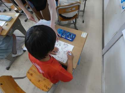 水泳の目標カードを記入していました。1年生から、自分の課題から目標を決めて取り組んでいくことを練習しています。