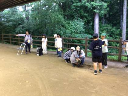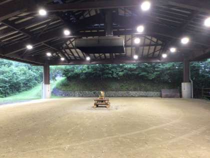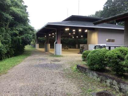 この後、写真の雨天ファイヤー場でキャンプファイヤーを行います。 ファイヤー実行委員が準備しています。