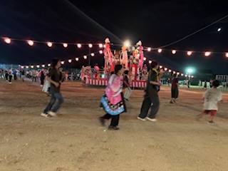 昨年度から復活した畝部地区の盆踊りが、今年度も畝部小学校の運動場で盛大に行われました。盆踊りには、たくさんの人たちが参加していました。小学生の姿もたくさん見られました。