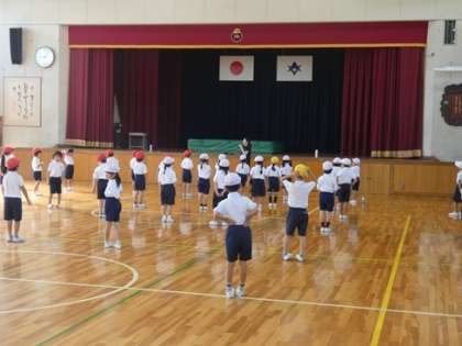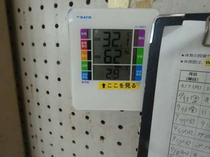 熱中症対策 公開日 2024/09/20 更新日 2024/09/20 お知らせ 運動場で計測したWBGTの値が31を超えると運動場では、運動会の練習を行えませんので、体育館で行います。ご覧のように体育館には、まだ冷房は入っていませんが、外より若干気温は低めです。 天気予報では、そろそろ涼しくなってくるようですが、昨年度の記録をみてみると、9月29日が最後の赤旗(WBGT31)であったようです。 運動会が近付いて来ましたが、無理なく、健康と安全第一で進めていきます。