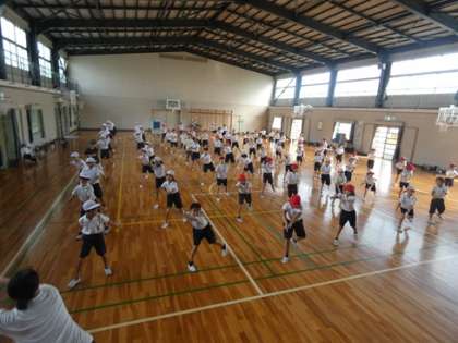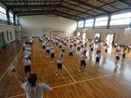 運動会で披露する中学年のソーラン踊りの練習が始まりました。