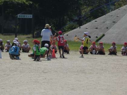 リレーの練習をしました。バトンパスの練習を頑張って練習していきましょう。