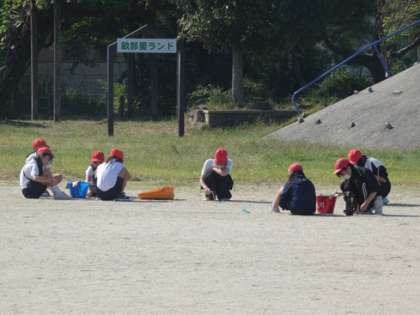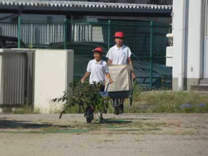 今日は、ファミリー活動で1組が、運動場の草取りをしてくれました。おかげで運動場の草はなくなってきたのですが、午後から熱中症対策で運動場での運動禁止の赤旗がたってしまい、運動場での運動会練習が予定通りにはできませんでした。