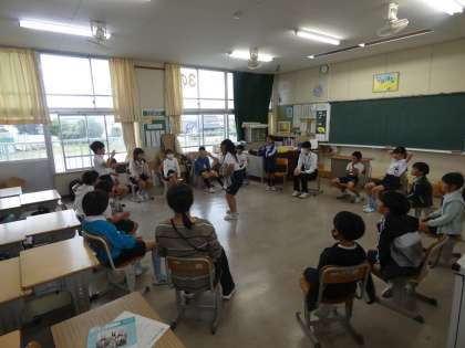 将来、教員を目指す大学2年生の3人の学生が本校の授業に入り、指導法を勉強しています。今回の3人の学生は、3人とも畝部小学校の卒業生です。畝部っ子は、年齢の近い大学生が来てくれてとても嬉しそうです。