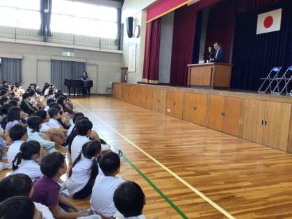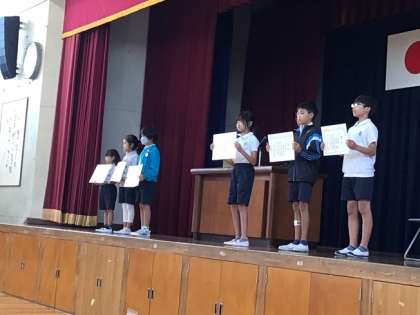 切り替え集会 2 公開日 2024/10/11 更新日 2024/10/11 お知らせ 校長からは、みんなの良い心や温かい気持ちを入れておくための「しあわせのバケツ」についての話がありました。その後で、読書感想文コンクールなどの表彰が行われました。