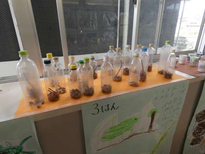 1年生の廊下には 公開日 2024/10/22 更新日 2024/10/22 お知らせ 1年生の廊下には、どんぐりがたくさん入ったペットボトルがおいてありました。このどんぐりは、1年生が、柳川瀬公園で集めたものです。
