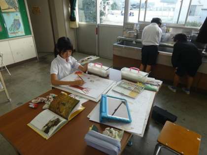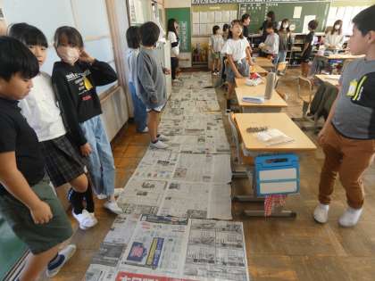 1m四方の新聞紙を教室に敷き詰めて、教室の広さを測りました。