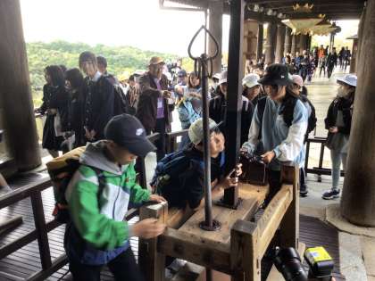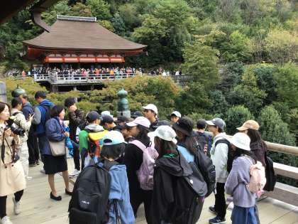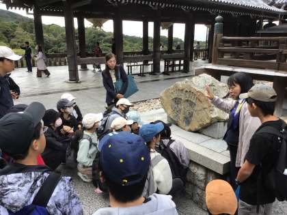 清水寺を散策しました。ガイドさんの話をしっかり聞けている子ばかりです。