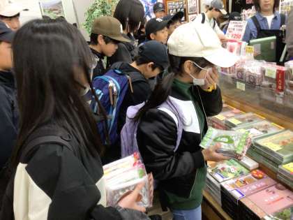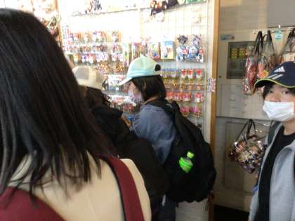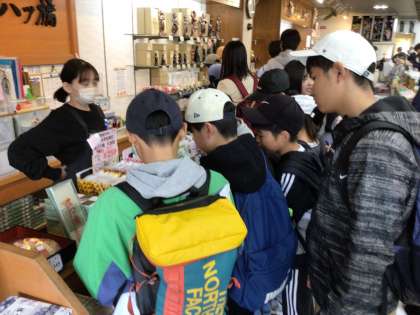 昼食を食べ終え、班ごとにお土産を購入しています。