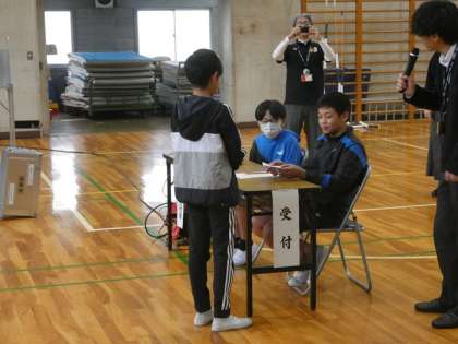 11月14日 6年生 選挙出前トーク 公開日 2024/11/14 更新日 2024/11/14 お知らせ 社会科「国の政治のしくみと選挙」の授業として、豊田市選挙管理委員会の講師をお招きして、仮想で市長選挙を体験しました。政策の異なる二人の市長立候補者の演説を聞いた後で、選挙と同じ機材を使って投票しました。受け付けや立会人なども児童が体験しました。 18歳になったら、きちんと投票所に行って、投票できるように政治にも興味を持って生活できる人になって欲しいものです。