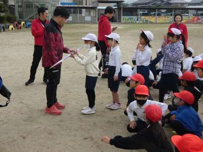 パラアスリートの高橋峻也選手をお招きして、お話を聞いたり、実際にやりを触ったり、高橋選手のやり投げのデモンストレーションを見させてもらったりしました。そして、子どもたちは、ジャべボールを投げさせてもらいました。