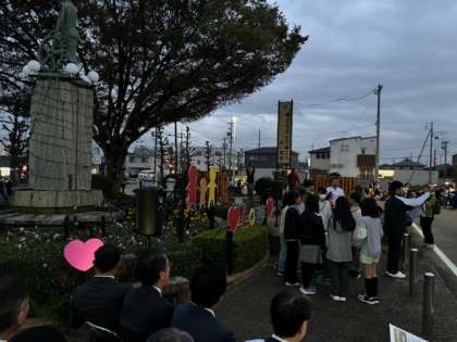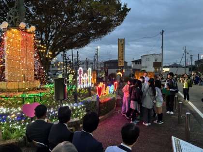 三河上郷駅前広場イルミネーション点灯式 公開日 2024/11/18 更新日 2024/11/18 お知らせ 今年も素敵なイルミネーションが出来上がりました。畝部小学校からも、デザイン採用児童(優秀賞)の4名が表彰を受けました。おめでとうございます。