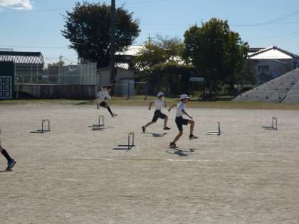 5年生 体育の授業 公開日 2024/11/19 更新日 2024/11/19 お知らせ ハードル走の練習をしています。自分にあったインターバルを選んで練習していました。今週は、冷房設置工事のため、体育館が使用できませんが、天気に恵まれ、運動場で元気に体を動かしています。