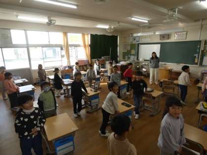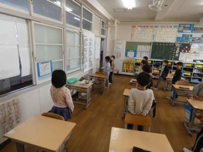 朝の会の時間に教室から元気な歌声が響いてきました。