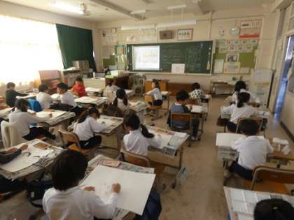 人権のポスターを描きました。仲良しな友達の笑顔がいっぱいのポスターを描けそうです。