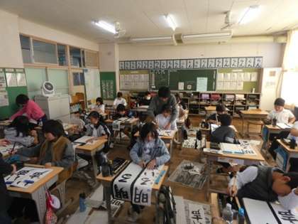 書き初め指導ボランティアさんにも来ていただいて練習しています。
