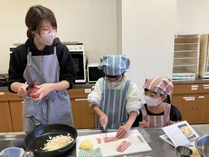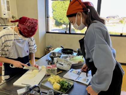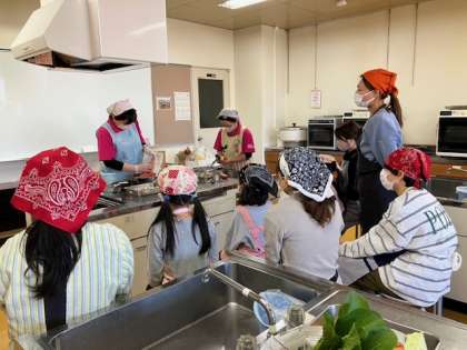 12月14日土曜日に、上郷交流館調理室で畝部小学校地域学校共働本部主催の腸活クッキング「クリスマス 親子クッキング」が、家田病院管理栄養士監修のもと行われました。
