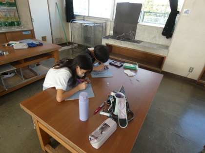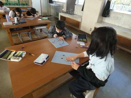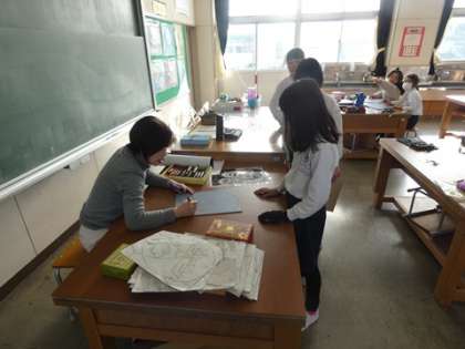 1月8日 4年生 図工の授業 公開日 2025/01/08 更新日 2025/01/08 お知らせ 自分の顔と手を描き、版画を掘っています。ピースの手の形が多いようです。みんな、黙々と作品作りを進めています。