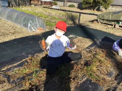 4年生 ニンジンの収穫 公開日 2025/01/17 更新日 2025/01/17 お知らせ 1月17日(金)の5時間目に4年生がニンジンの収穫をしました。野菜作りの講師の方に育て方を教えていただきながら、7月に種植えしました。 収穫では、大きく育ったニンジンを抜くと、子どもたちの歓声が上がっていました。 来週は、収穫したニンジンを調理します。子どもたちは、とても楽しみにしていました。