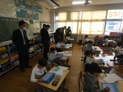 畝部小学校学校運営協議会 公開日 2025/02/10 更新日 2025/02/10 お知らせ 地域や保護者から選ばれた学校運営協議会委員が、畝部小学校の運営方針について話し合いました。今回は、協議会の前に学校運営協議会委員が、授業を参観しました。参観した委員たちは、1年生からipadを使いこなす児童の姿や教師主導ではなく、児童が主体的に活動し教師がその活動を支える授業スタイルにびっくりしている様子でした。 参観後の会議では、あらためて地域で子どもたちを育てていくことを再確認しました。