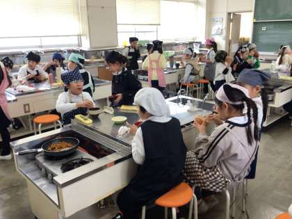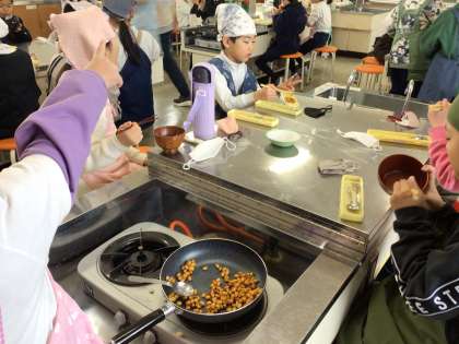 2月12日(水)の2時間目に、3年生が育てた大豆をつかって「大豆のあまからに」を作りました。子どもたちは、大豆一粒ずつを大切に協力して作っていました。