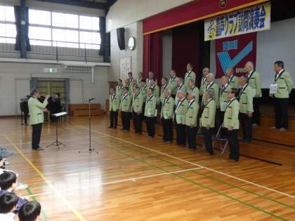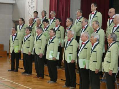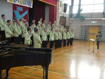 豊声クラブ(男声合唱団)のコンサートを全校で聞きました。豊声クラブは、学校の先生を退職された方を中心に構成された合唱団です。年配の方が多い合唱団なので、子どもたちは「どんな合唱をするのか」と興味津々で臨みましたが、最初の「Dai Lied」という曲の美しいハモリ声に引き込まれてしまいました。よく知っている曲を楽しくアレンジした合唱は、聞いていても楽しく、あっという間に時間は過ぎていきました。ラスト曲の「サヨナラ」とその前の曲「群青」は、卒業を控え仲間について考えることの多い6年生の心にささったようでした。